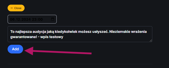 Pamiętaj o zachęceniu słuchaczy do przyjścia. Dobry marketing to podstawa. Aby Twój wpis był widoczny, wystarczy kliknąć ikonkę Add: