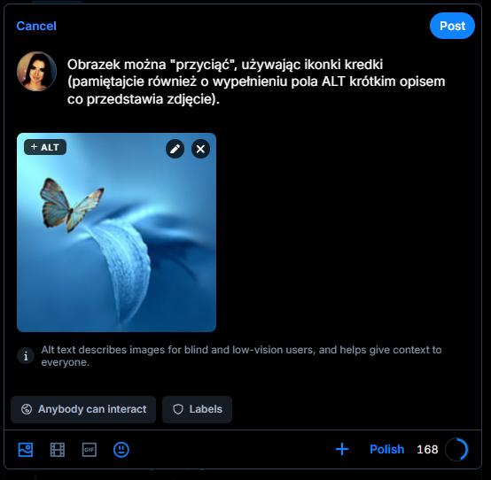 Na tej platformie post/tweet nazywamy Skeet od połączenia BlueSky i Tweet, bowiem od Twittera BlueSky się wywodzi, ale możesz też używać określenia post. Jak go utworzyć? Nic prostszego. Kliknij ten przycisk:
