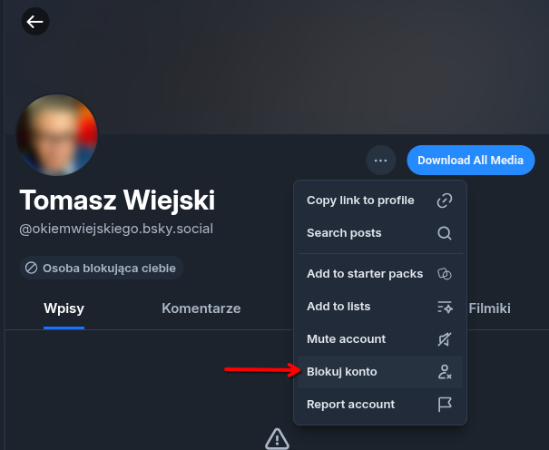 W przypadku, gdy znasz język angielski i chcesz na bieżąco śledzić rozwój BlueSky, możesz polubić profil @bsky.app