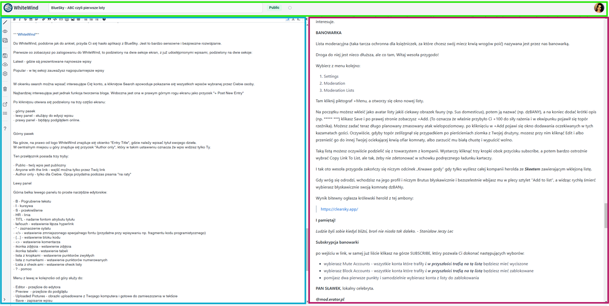 - WhiteWind - platforma blogowa, dla osób oferujących np. felietony