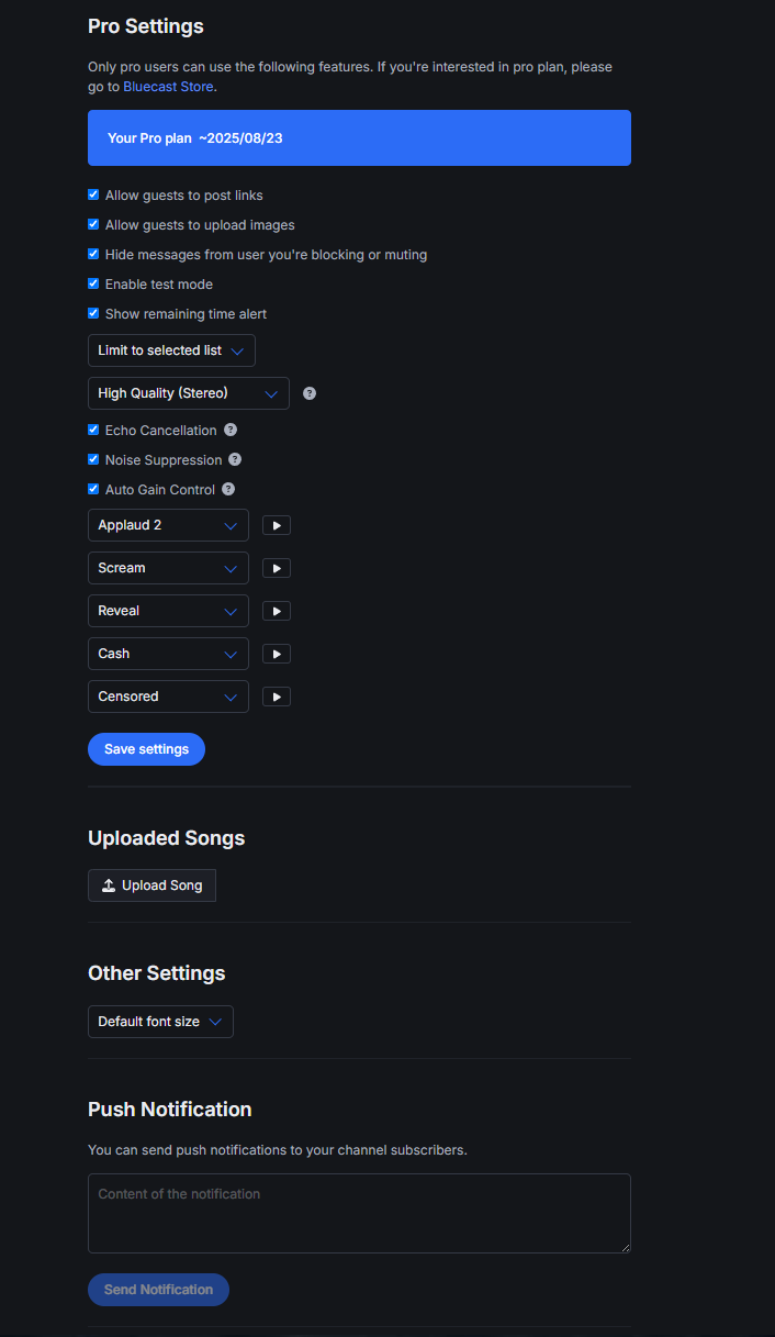 - BlueCast prosi o korzystanie ze źródeł dźwięku wolnych od praw autorskich. Korzystanie ze źródeł dźwięku objętych prawami autorskimi jest zabronione i skutkuje zawieszeniem konta.