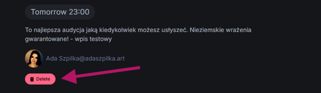 Zamieszczony wpis możesz zawsze skasować, wciskając ikonkę Delete:
