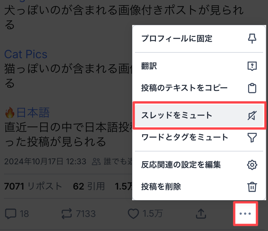 そんな時は、スレッドミュート機能を使うと解決できます。