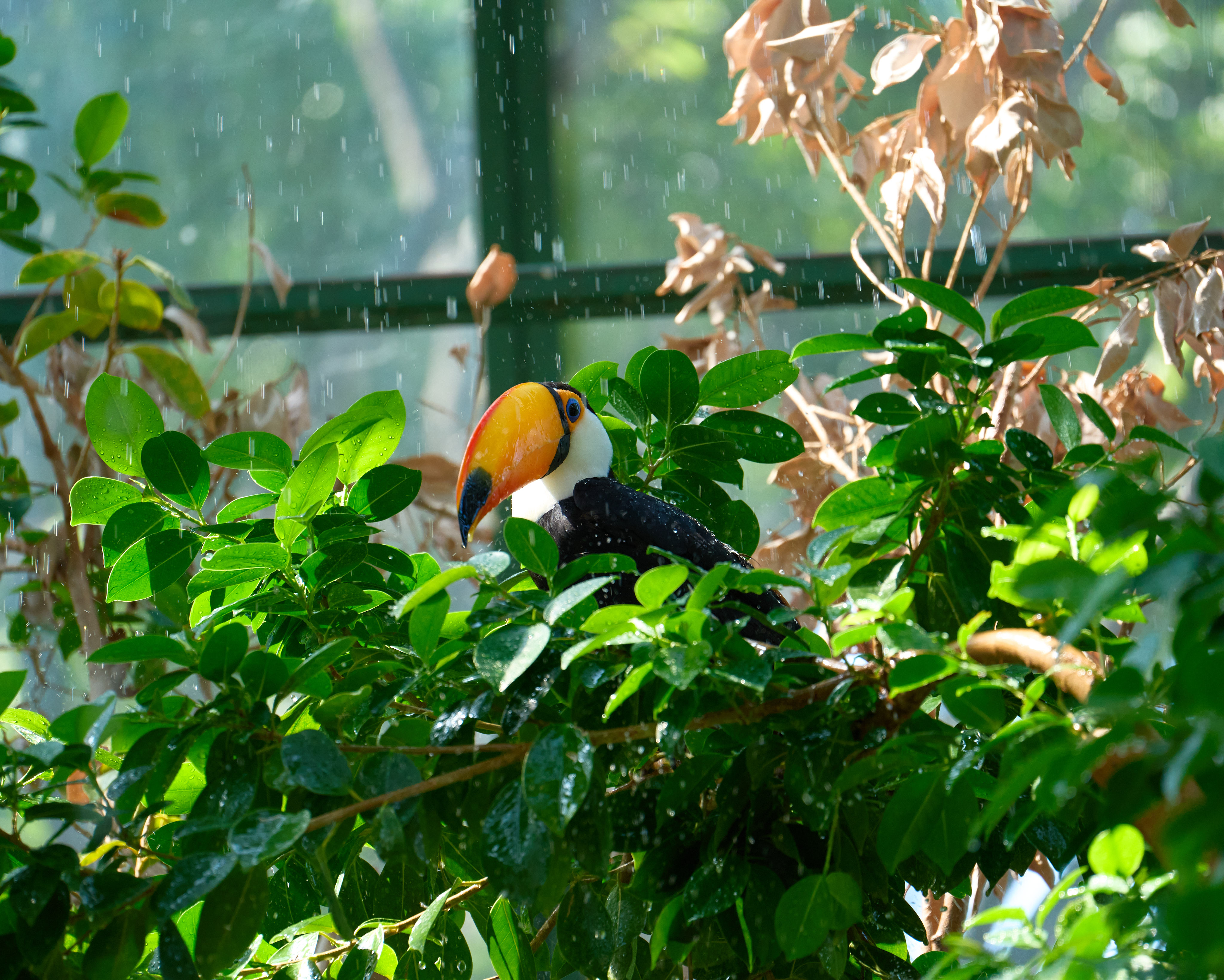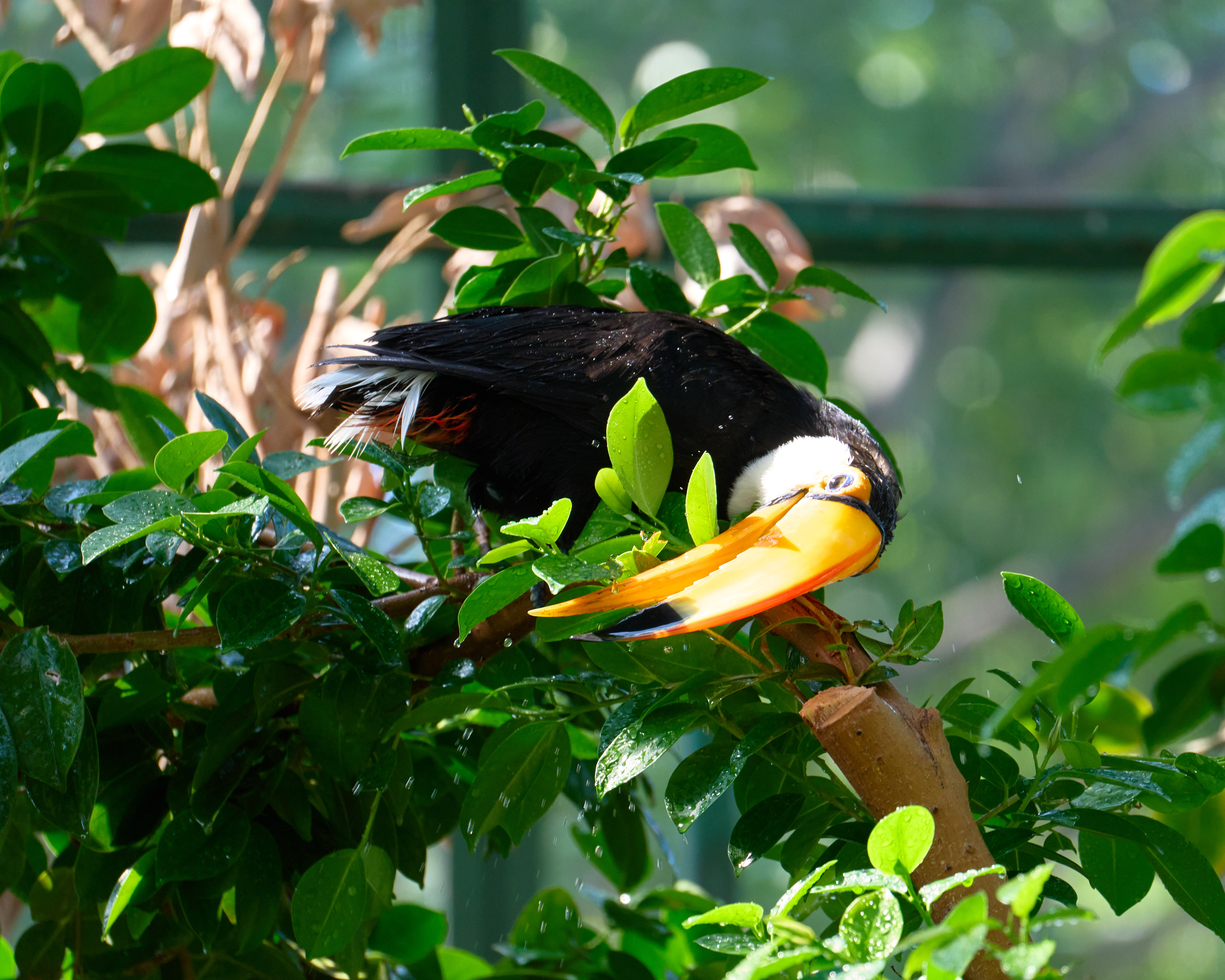 雨に濡れるオニオオハシ