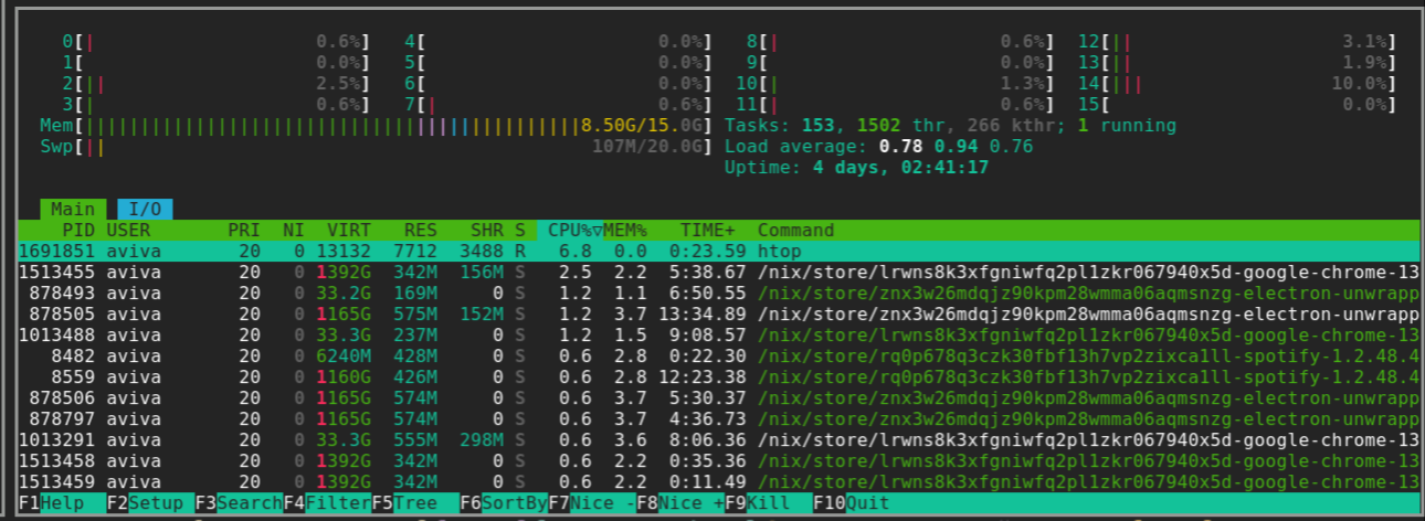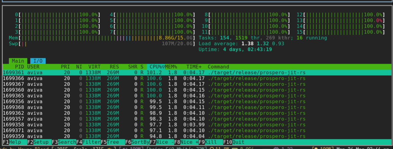Just as a sanity check, we can see that our Rayon based code is using all our CPUs: