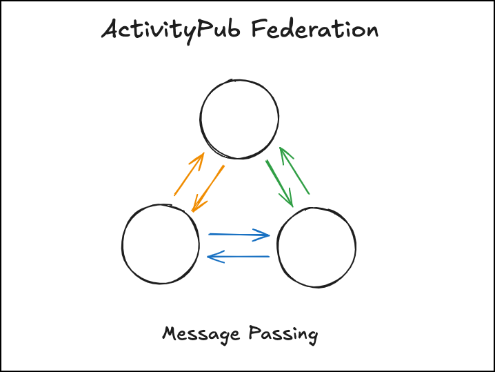 ActivityPubでは、インスタンス間でアクティビティを配送することで連合を実現します。このようなメッセージ送信を基盤とする連携方式は「メッセージパッシング」と呼ばれます。