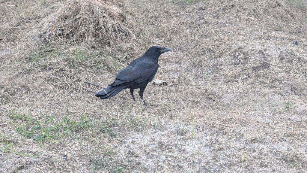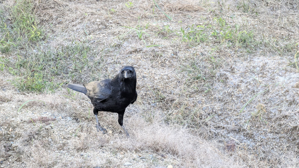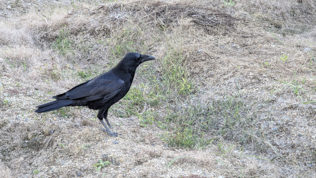 (alt text: Not a crow-by-the-sea but Mr. Crow in the abandoned garden)