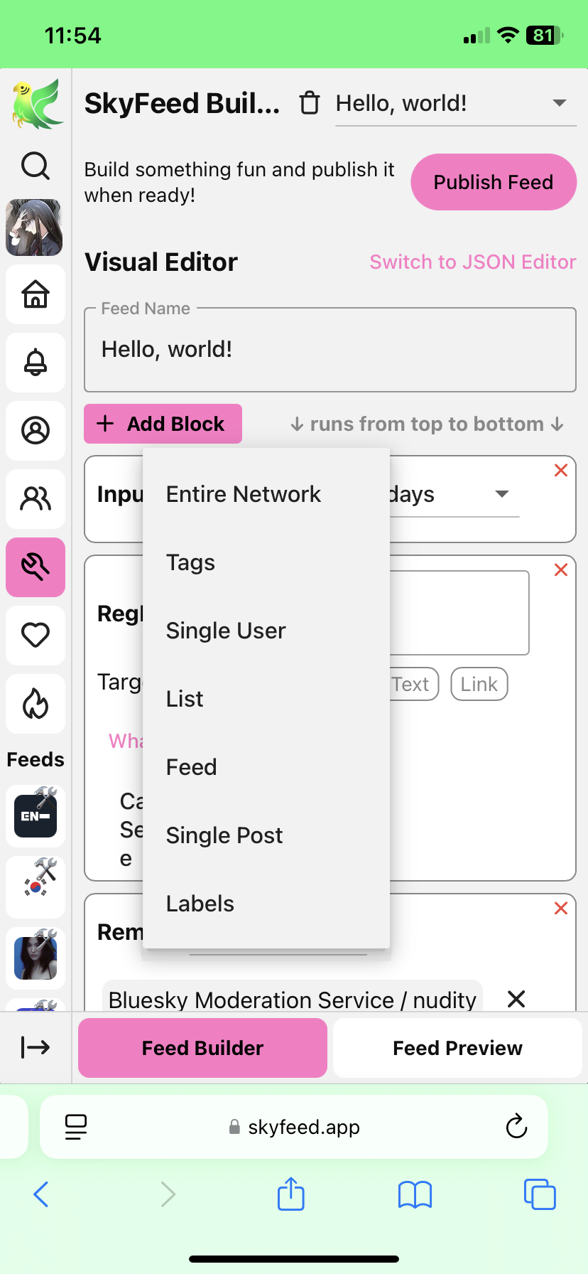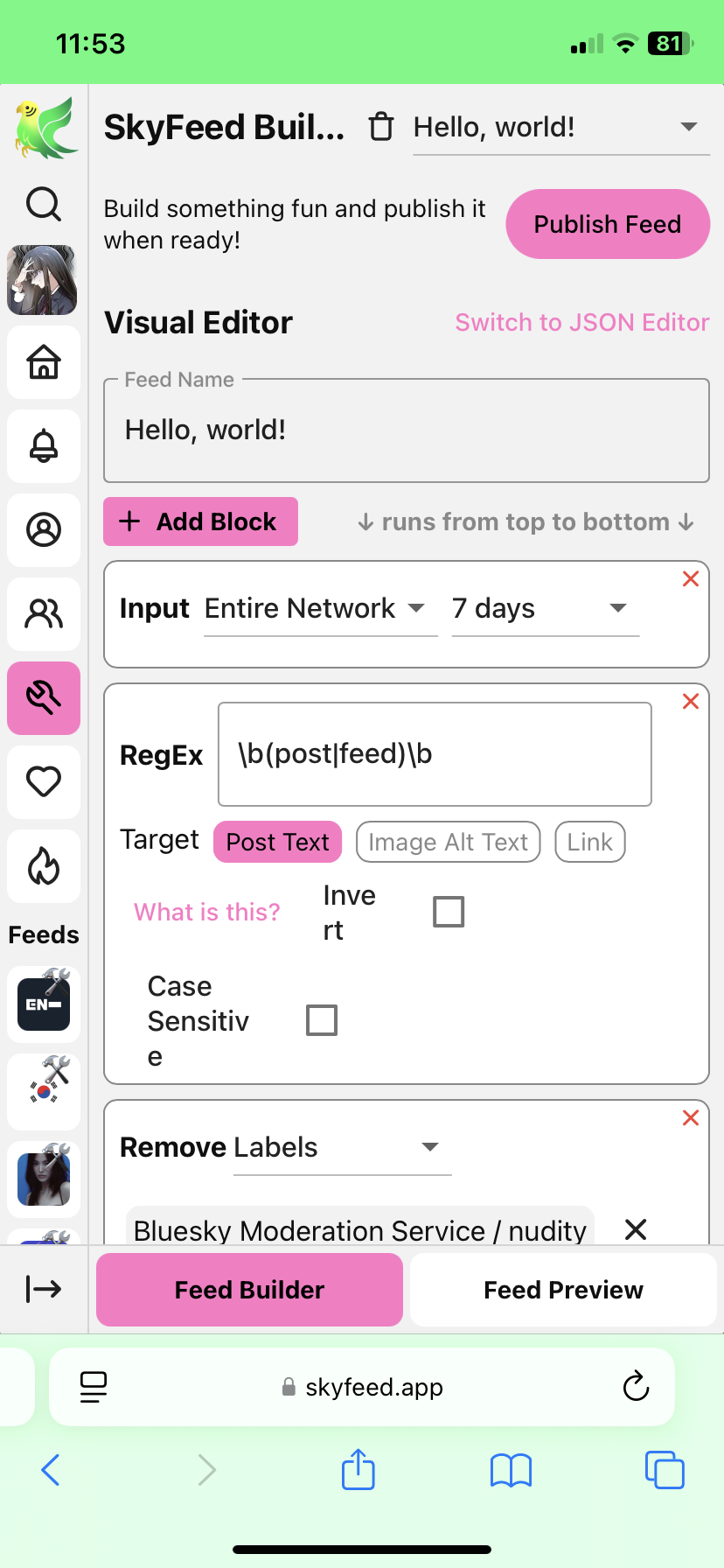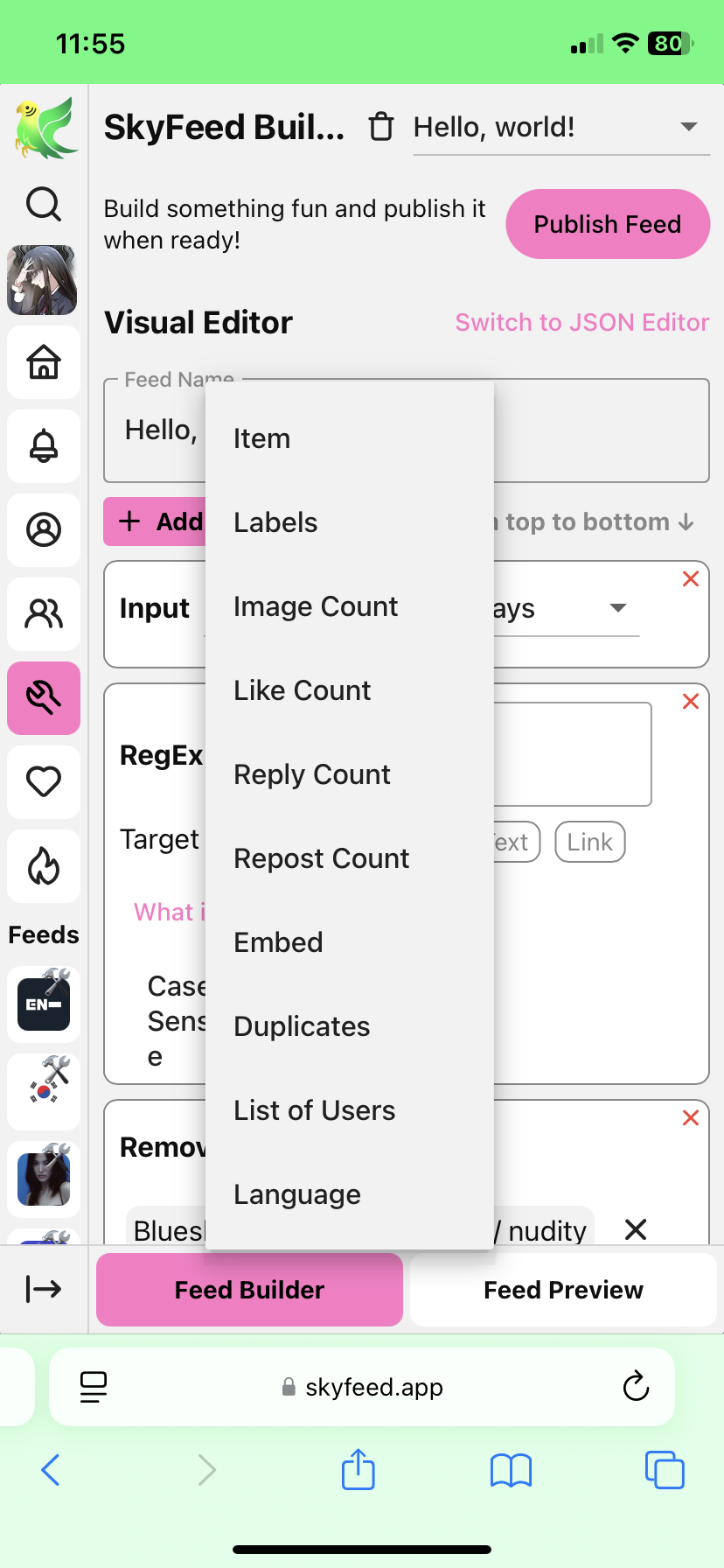 Volte para o Feed Builder e clique em Publish Feed. Adicione uma foto de perfil (opcional) e uma descrição. Clique em Publish e está pronto!