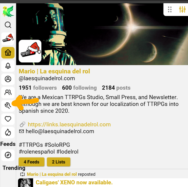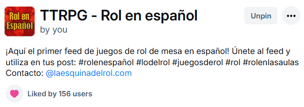 Ambos feeds originalmente los cree para mí, yo no sabía que se podían compartir. Esto lo supe hasta mucho después. Lo hice porque cuando entré no existían nada en español, en el caso del primer feed, y nada sobre juegos en rol en solitario, en el caso del segundo. Entonces, los feeds me servían para crear mis propias cronologías de mi interés. A lo que voy es que tú puedes crear los tuyos propios.