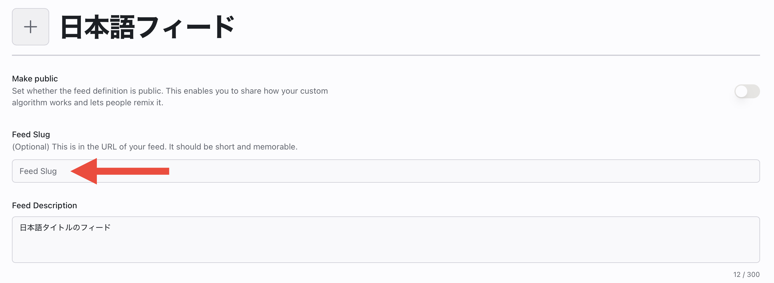 タイトルを日本語にしたい場合は「Feed Slag」に好きな英数字を入れましょう。