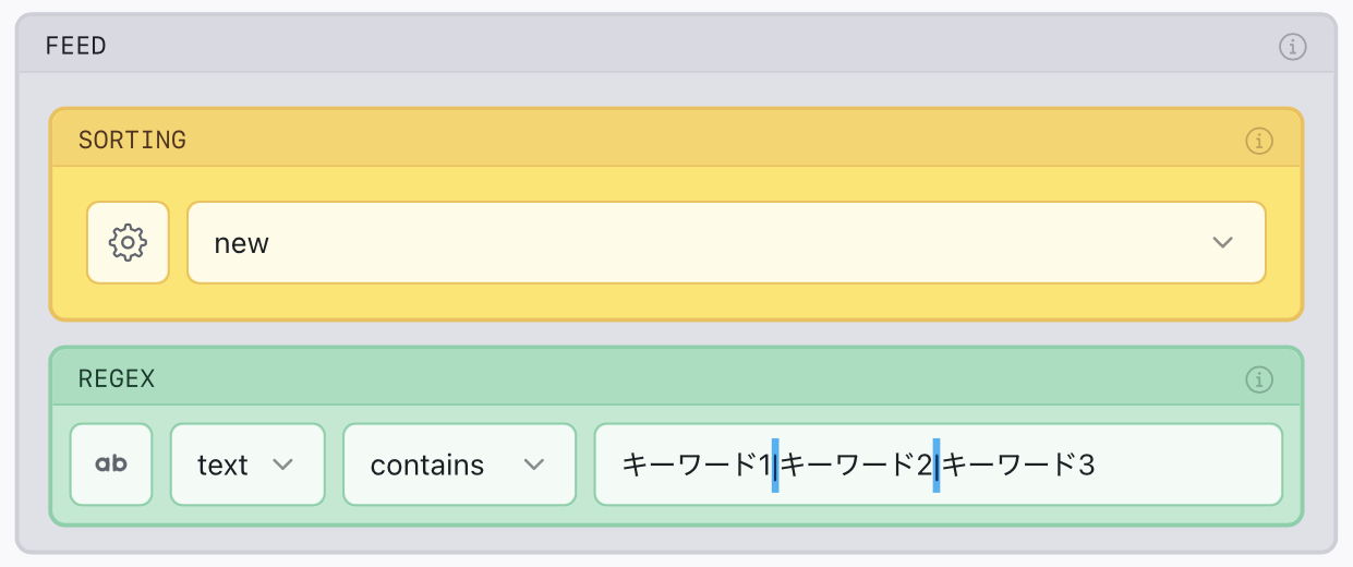 ひらがな、カタカナ、漢字にヒットするポストを抽出したい場合はREGEX(正規表現)ノードを使うようにしましょう。