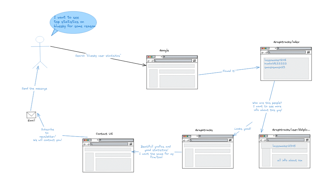 We began GraphTracks in February 2024, shortly after Bluesky became publicly available. It was a spin-off from another idea—proof that sometimes the best ideas come when you're procrastinating on others. Bluesky was a greenfield back then, with very few tools and obscure documentation. However, due to the openness of the platform, it was easy to start with, "What if we build social media analytics just for Bluesky?" After all, who doesn't love diving into the unknown with a blindfold on?