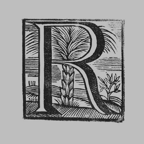 Použitá ilustrácia: Remeselný, pravdepodobne pražský rezač iniciál: Iniciála R, okolo roku 1700, drevorez, Galéria umenia Ernesta Zmetáka (GNZ)