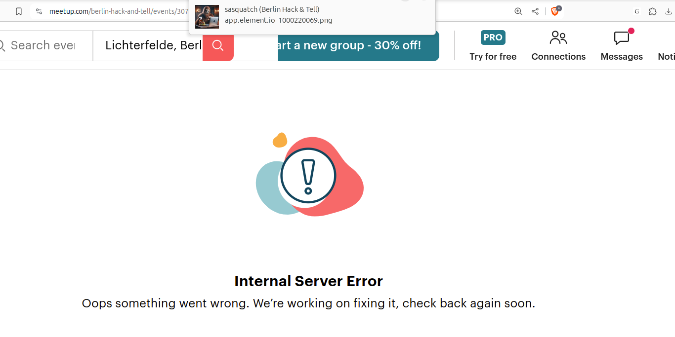 For example Berlin Hack&Tell started out with meetup.com/berlin-hack-and-tell. In the beginning this worked well and helped bootstrapping the community. But capitalism and the process of enshittification over the years (especially after meetup.com was being acquired multiple times) made it insufferable. Recently they switched off the API we relied on without upfront notice. Also the whole site gets buggier every time I have to use it and I already lost data on this platform after Internal Server Error.