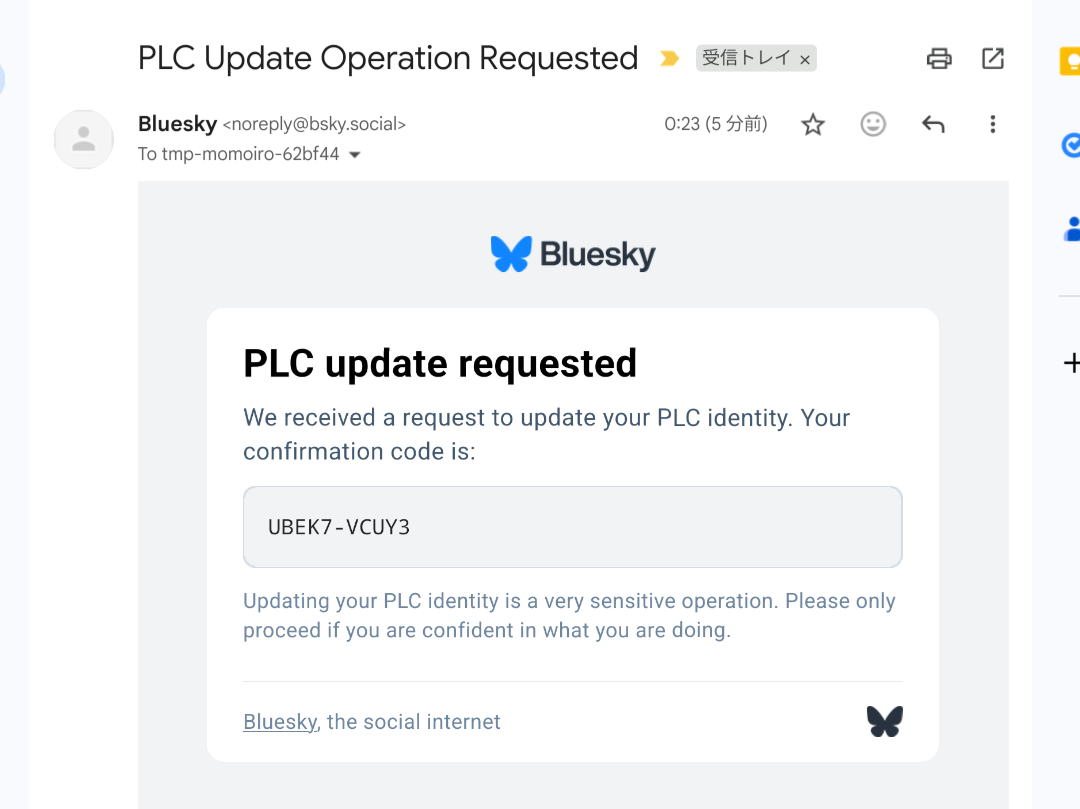 これを先ほど用意したRotation Keyで署名し、PLC Directoryに提出します。