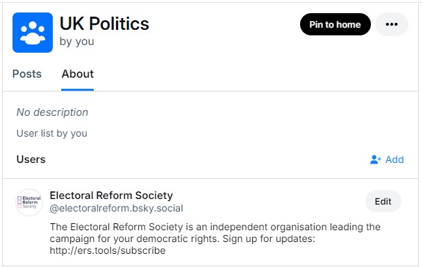 Lists are a simple grouping of users created by anyone but are incredibly powerful. They can be used to create a custom feed of just those users' posts by pinning the list to your home page. The list will be pinned to the right hand side of the home page and if you click on it your feed will show only posts from that list. It also appears in scrollable tabs at the top of the feed.