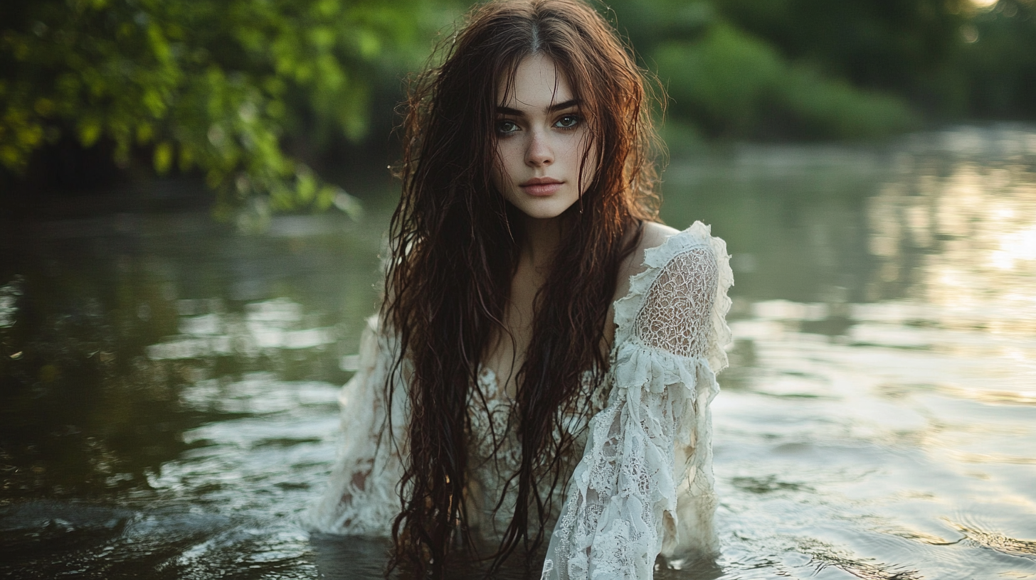 Lecz los bywa zdradliwy, a bogowie często plączą nici przeznaczenia... Pewnej letniej nocy, gdy Cieszybor odpoczywał nad brzegiem jeziora, usłyszał śpiew tak cudowny, że zdało się, iż sam Perun otwiera niebiosa ku ziemi. Gdy podniósł wzrok, ujrzał postać smukłą i delikatną, jakby utkaną z mgły i wody. Skórę miała bladą, niemal przejrzystą, połyskującą jak poranna rosa na liściach. Długie, falujące włosy, w kolorze wody odbijającej światło księżyca – srebrzyste i ciemne jak noc, spływały po plecach do gładkiej tafli jeziora. Spoglądała na niego oczami pełnymi tajemnicy, o głębii tak nieprzeniknionej, jak dno leśnego stawu. Jej delikatne usta, blade jak kwiaty nenufaru, rozchyliły się w uśmiechu. Uwodzicielskim i złowrogim. „Cieszyborze” — wyszeptała głosem, co do szpiku kości przenikał. „Jam Nawka, strażniczka tego jeziora. Widzę w tobie męża silnego, mądrego i wielkiego. Mogę dać ci przyszłość, w której twe imię na ustach wszystkich będzie, wodzem cię uczynię, jak Wojnomira wielkiego, bogowie sami ci sprzyjać będą.”