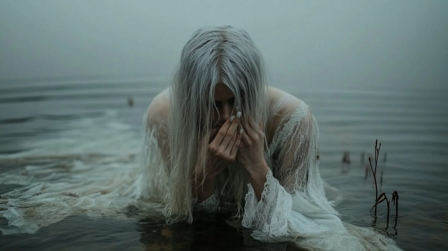 Gdy jej ból stał się nie do zniesienia, rzuciła się w topiel, licząc na to, że śmierć przyniesie jej ukojenie. Lecz zamiast spokojnego odpoczynku, jej dusza, napełniona gniewem i żalem, nie odeszła do Nawii. Nie, zamiast odejść w pokoju, uniosła się i przejrzała w lustrze wody, oświetlona bladym światłem Księżyca. Zobaczyła istotę utkaną z niebywałą delikatnością, jakby była cieniem bezbrzeżnego smutku. W ciemności nocy, jej oczy lśniły jak węgle, a drgająca sylwetka kołysała się, jak mgła niosąca ze sobą chłód. Twarz jej niepełna, jakby niezdolna do wyrażenia żadnej emocji poza bólem – blade rysy, zaledwie cień dawnej urody, jakby była wciąż rozdarta między życiem a śmiercią. Uniosła do góry swoje dłonie i zobaczyła, że są nieco wydłużone, palce cienkie, wręcz nienaturalnie długie, jakby gotowe ścisnąć duszę, nie zostawiając żadnej nadziei. Na jej twarzy pojawił się okrutny uśmiech, a blade, lodowate usta rozchyliły się, jakby w niewypowiedzianym pytaniu. Jakby w oczekiwaniu na odpowiedź, która nigdy nie nadchodzi. Załkała przeciągle, ostatni raz przypominając sobie maleńkie serce bijące pod jej własnym, ciche słowa nigdy nie dotrzymanej przysięgi oraz nienawistne spojrzenia ludzi. A potem rozległ się długi, przeciągły skowyt, który usłyszeli wszyscy mieszkańcy osady, a który zapowiadał nadchodzący mrok. Tak oto zrodziła się Zmora, pełna nienawiści, nie mogąca znaleźć wytchnienia ani wśród żywych, ani umarłych.