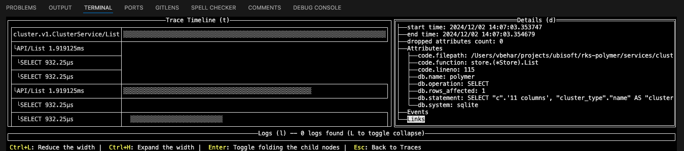 Then, I can configure Tasks to run the dependencies. I can easily configure them to use different Terminal views in my IDE, making it easy to see the logs of either Temporal or Envoy. I can even run otel-tui, a terminal UI for OpenTelemetry data, to see the traces and metrics of my application. Directly from my IDE.