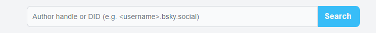 Enter the Bluesky handle or DID of the blog author in the text box on the top page and click the button labeled SEARCH BLOGS.