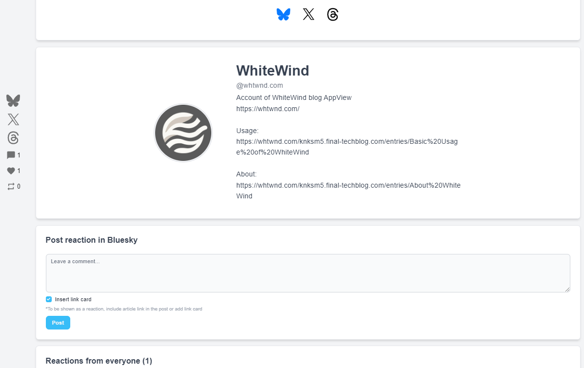 容ã¯ä»¥åãšåæ§ãBlueskyãWhiteWindäžã§ãã®èšäºã®URLã«èšåãããšãã®èšåã衚瀺ãããŸãã
