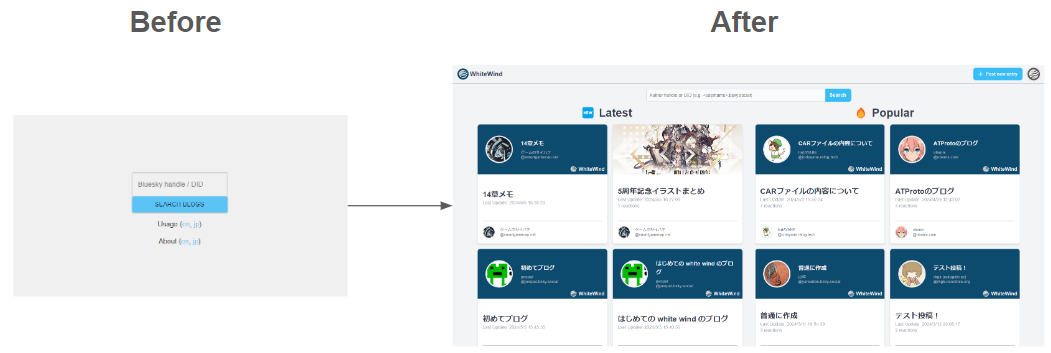 ãããŸã§ã¯èè åã«ããèšäºæ€çŽ¢ããã¯ã¹ãšäœ¿ãæ¹ã»Aboutãã衚瀺ãããŠããªãã£ããããããŒãžã§ãããè²ããªèšäºã衚瀺ãããããã«ãªããã©ããªèšäºãããã®ã詊ãã«èŠãã®ãç°¡åã«ãªããŸããïŒ