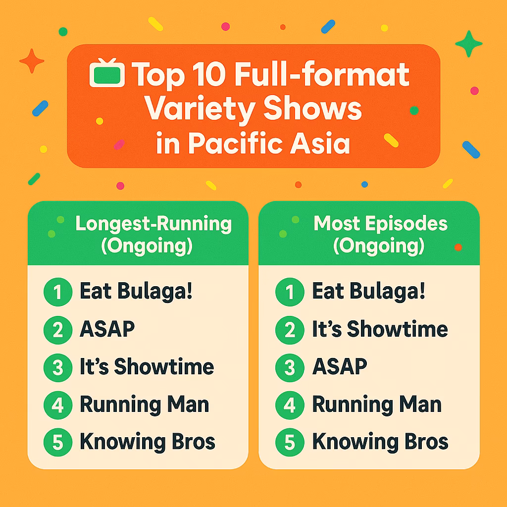 | 3 | ASAP | 🇵🇭 Philippines | 1,500+ | Weekly Live | 1995 |